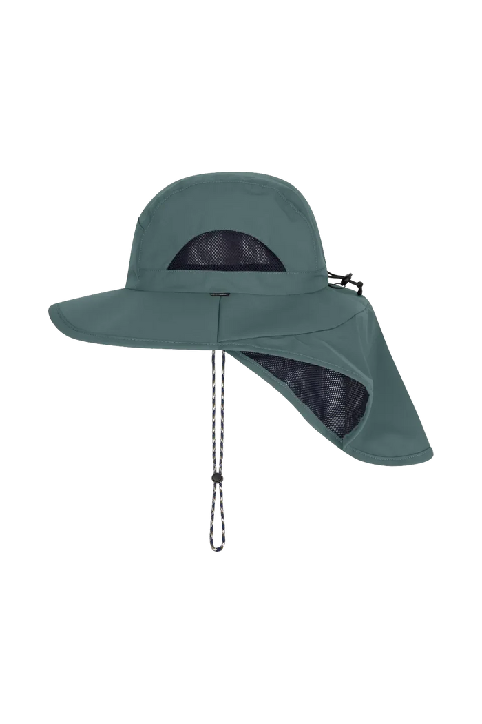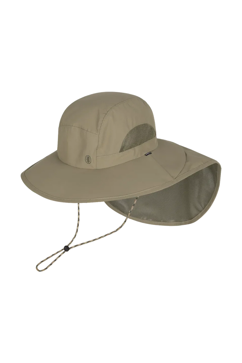 Made from durable 100% Polyester Ripstop, the Flinders features airflow mesh panels and customised neck flap to keep you cool and completely protected from the harsh sun. With a toggle back adjuster and adjustable chin strap, this quality lightweight hat stays secure on any coastal hike or fishing trip.