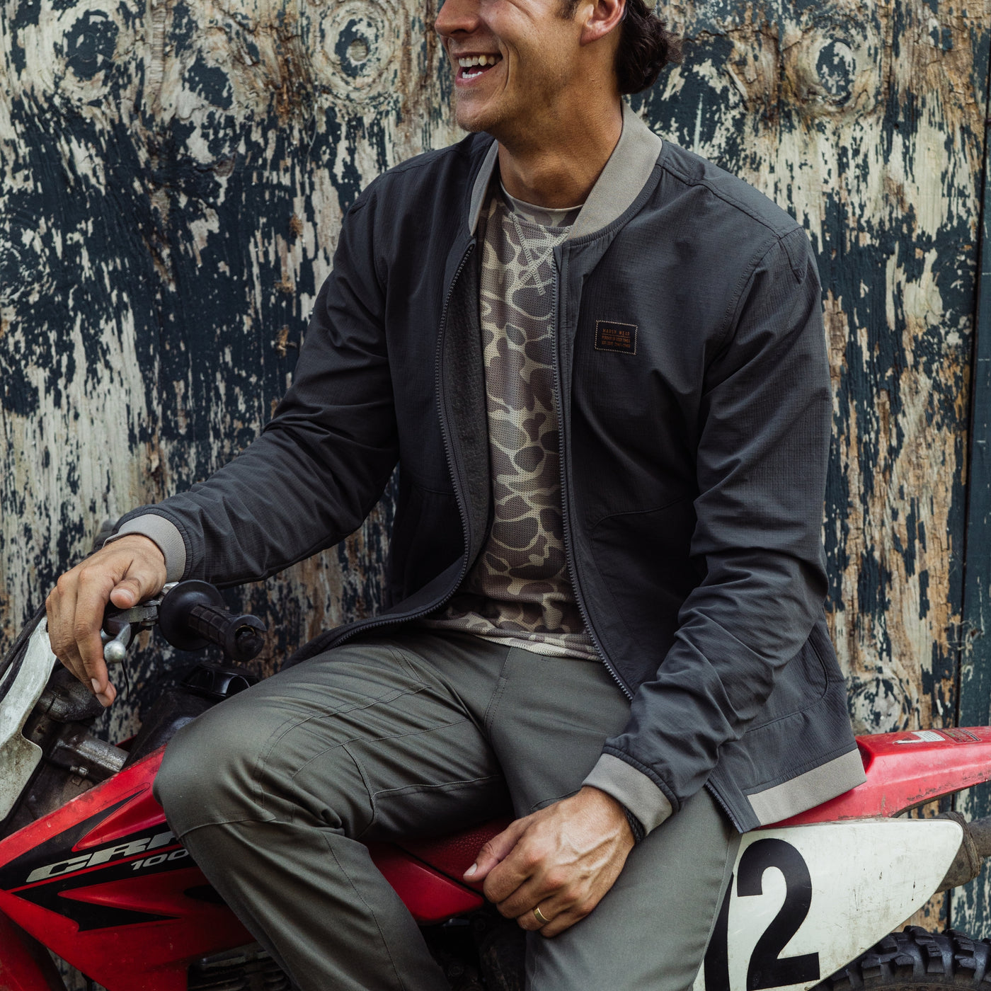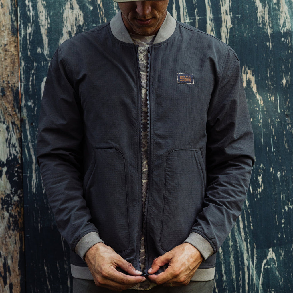 Understated style meets rugged performance. Its abrasion-resistant nylon face stands up to wear and tear, while a soft brushed fleece interior keeps you comfortable from dock to downtown. Finished with DWR Teflon EcoElite™ for water resistance, zippered hand pockets, and just the right amount of stretch—this bomber-inspired layer is made to move and built to last.