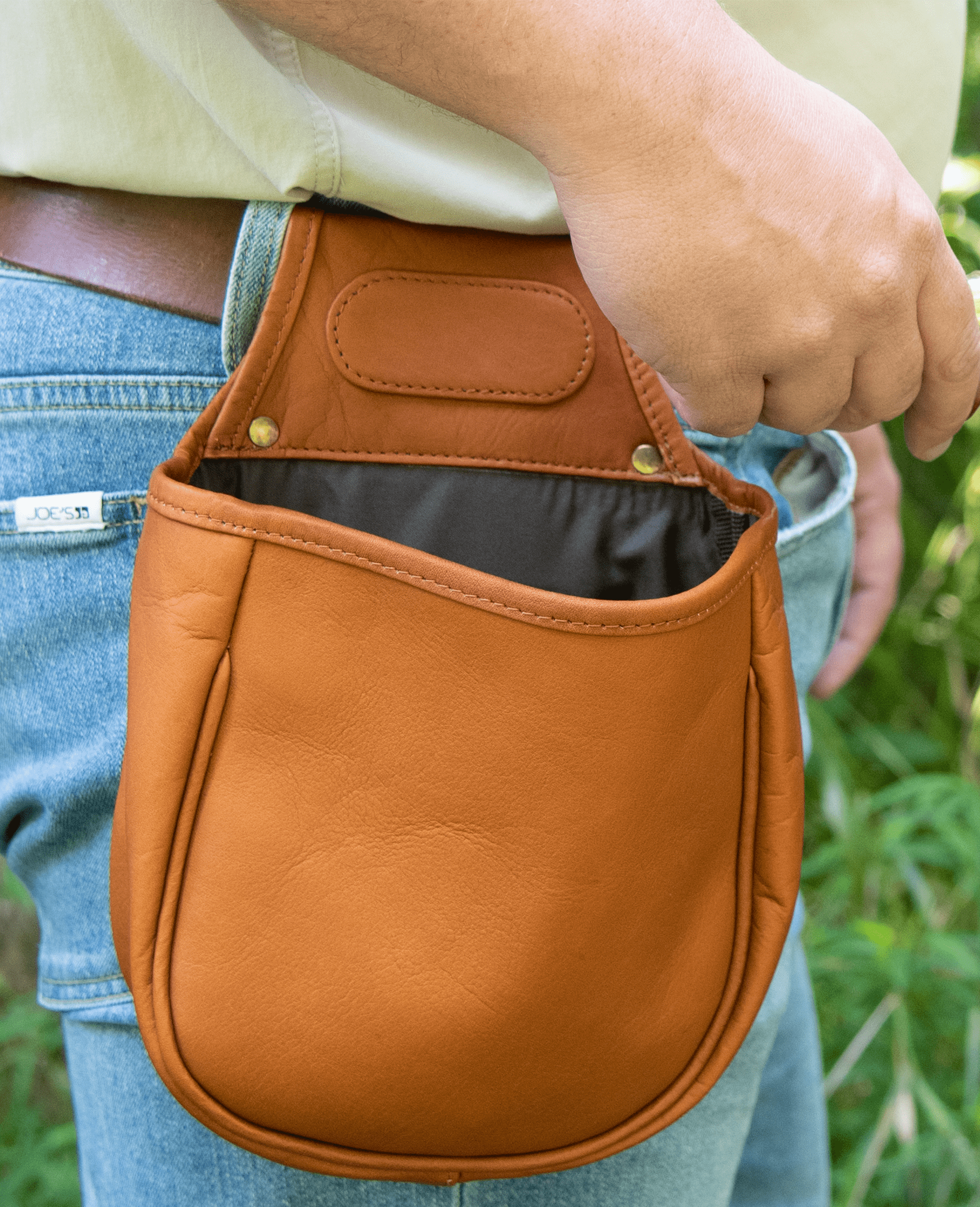 Crafted from Top Grain Columbian Leather, the Royal Shotgun Shell Bag features one compartment with a Durable Mocha Brown Nylon Lining. The Royal features an open top which allows the shooter quick access to more ammunition. A slot in the back allows the pouch to be attached to a belt. This is great for a day of shooting at the range or to use while in the field.