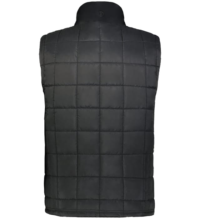 Insulated vest designed with a quilted polyester shell, high collar, and water-resistant finish for layering in cold conditions.